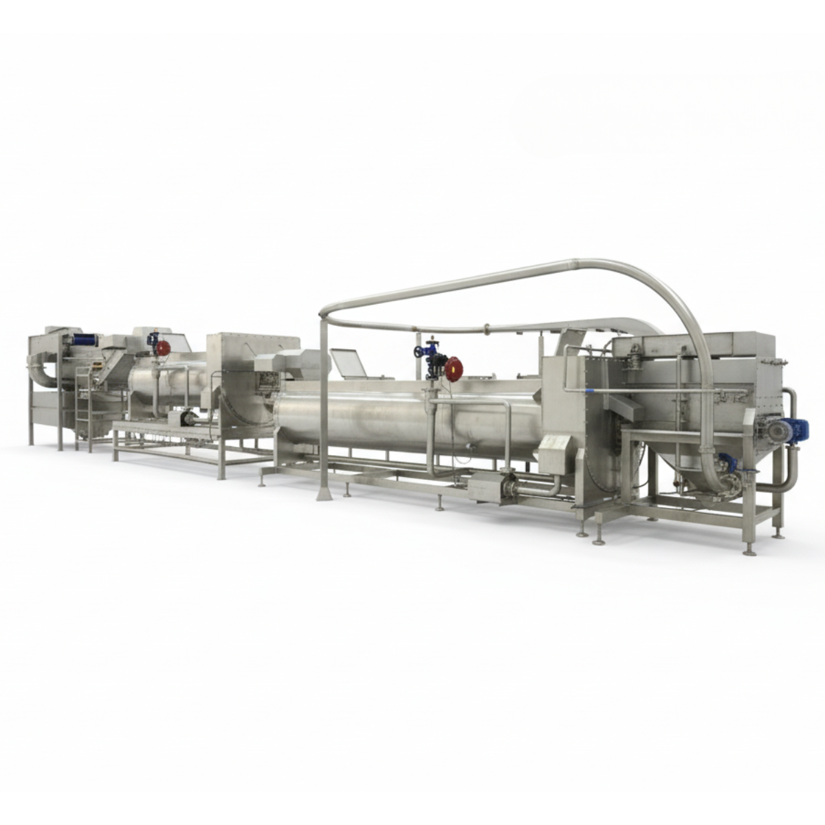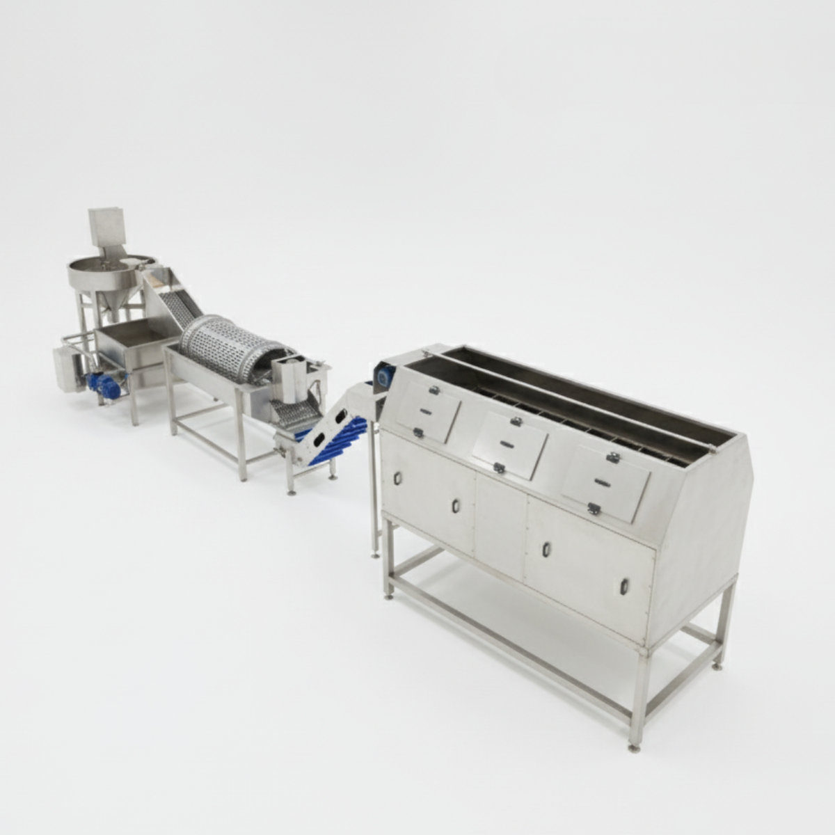 يُجري هذا النظام عملية الفصل الأولي للمخلفات الصلبة، تليها مرحلة الغسيل والتنظيف الأولي لضمان دخول بطاطس نظيفة وعالية الجودة فقط إلى خط الإنتاج.