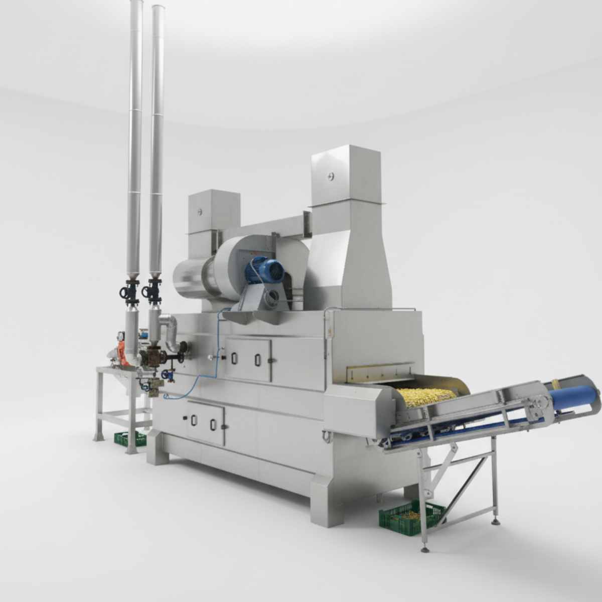 نظام تجفيف هوائي عالي الكفاءة مصمم لإزالة الرطوبة الزائدة من أصابع البطاطس قبل دخول مرحلة القلي.